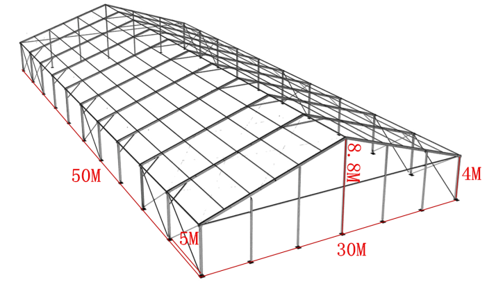 1.篷房跨度有3米、6米、10米、15米、18米、30米6種常用尺寸。