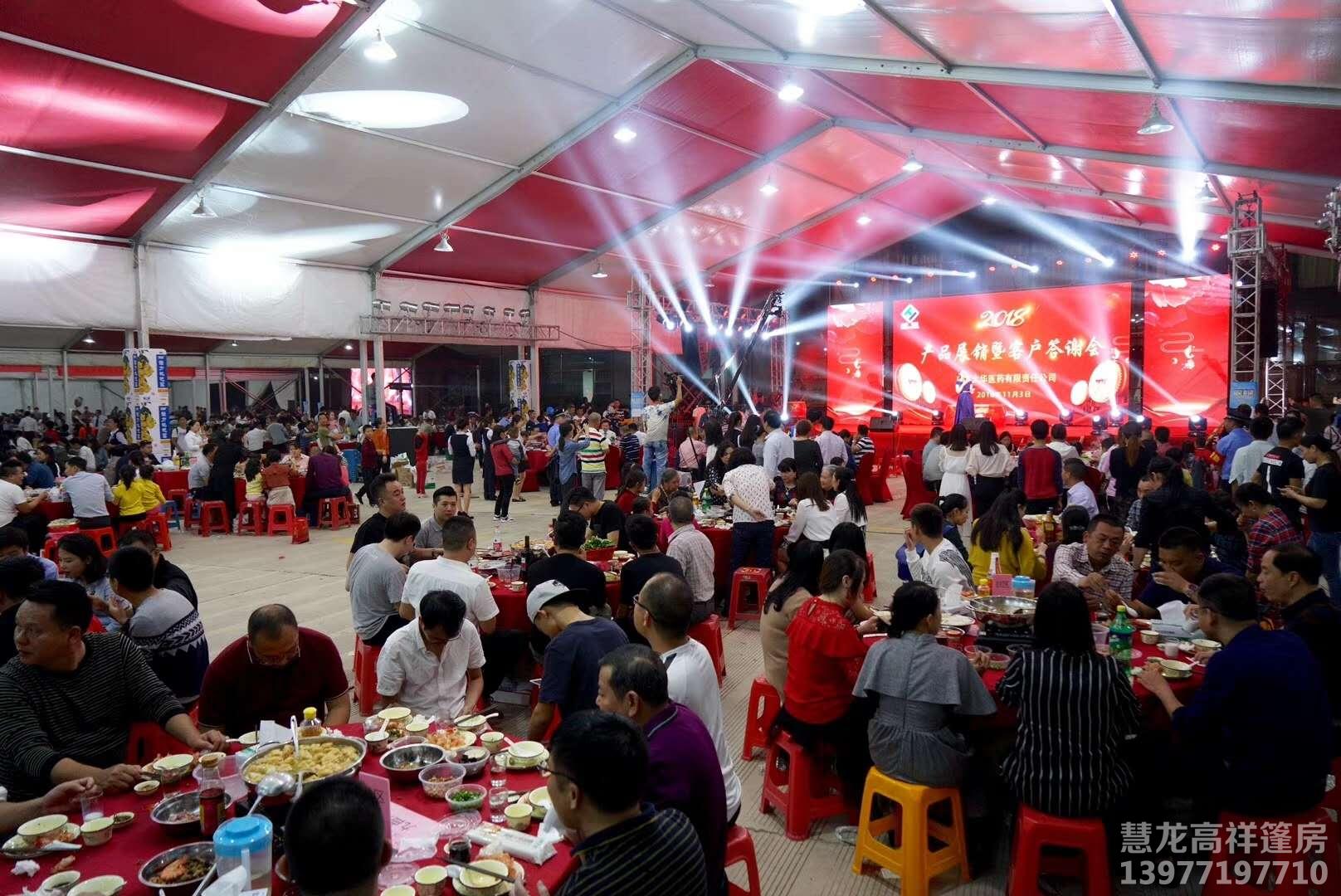 取代酒店舉辦宴會(huì)活動(dòng)的傳統(tǒng)模式,快速搭建和個(gè)性化定制的天然結(jié)構(gòu)優(yōu)勢(shì)讓裝配式篷房越來(lái)越被廣泛應(yīng)用。多年來(lái)慧龍展業(yè)在篷房方面積累經(jīng)驗(yàn),打造過(guò)眾多高端宴會(huì)篷房、派對(duì)篷房、活動(dòng)篷房、年會(huì)篷房上,為多家企業(yè)提供完整的活動(dòng)場(chǎng)所及空間解決方案。除此之外,還為各種私人派對(duì)、品牌活動(dòng)提供個(gè)性化場(chǎng)所定制服務(wù),包括布局劃分、內(nèi)飾搭配,紅白色搭配喜慶祥和。在視覺(jué)和在功能上達(dá)到差異化和個(gè)性化的效果。能在自己家門口開(kāi)會(huì)是多么方便的事,商務(wù)開(kāi)訂貨會(huì)。晚上答謝會(huì),一舉兩得,既展現(xiàn)公司的實(shí)力,還省掉去酒店的錢正在代酒店舉辦宴會(huì)活動(dòng)的傳統(tǒng)模式